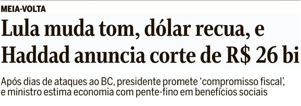 “Lula muda tom, dólar recua, e Haddad anuncia corte de R$ 26 bi”. A manchete que João Ítalo deglutia junto com o café da manhã fazia-o filosofar.